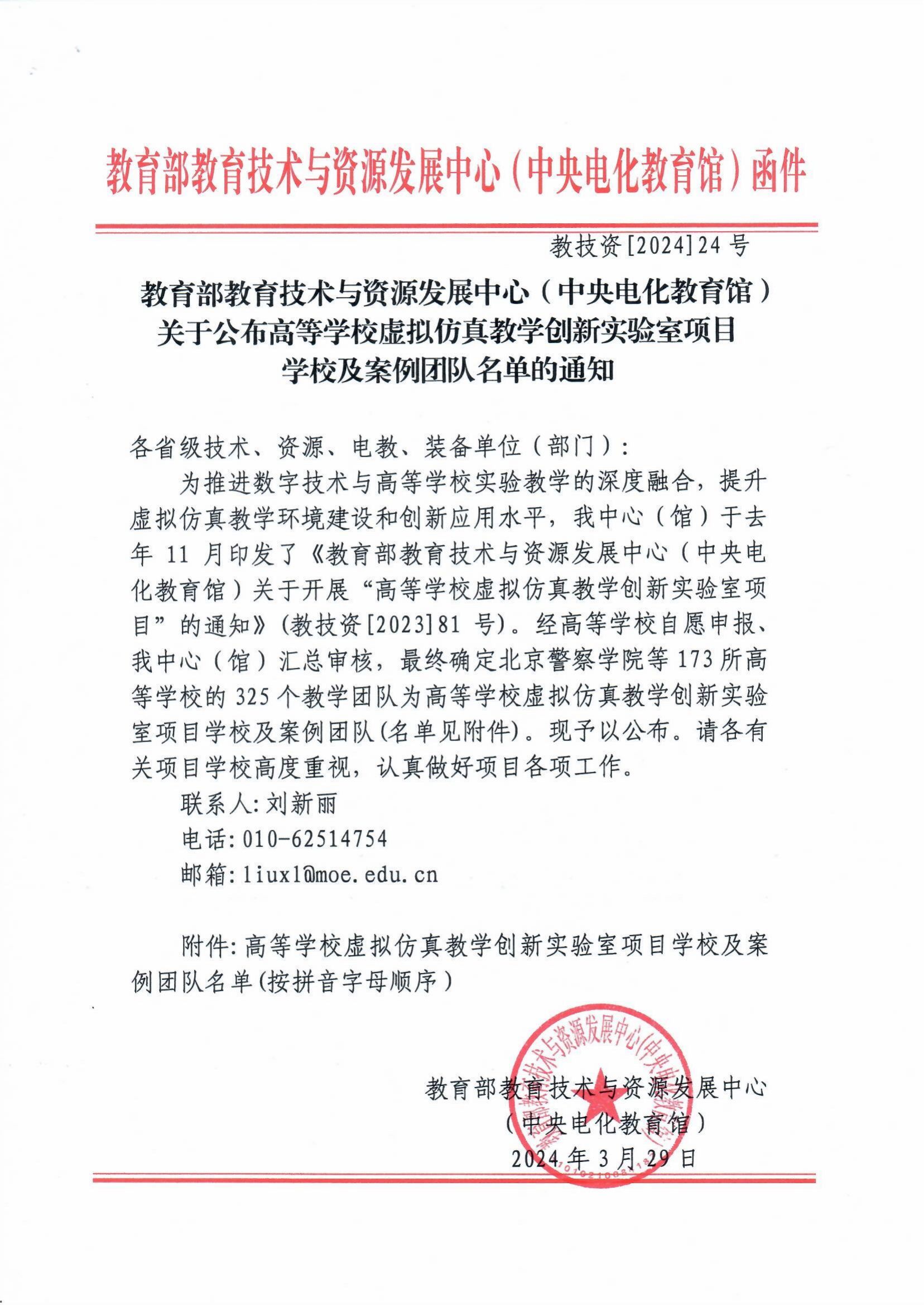 3月29日,教育部教育技术与资源发展中心(中央电化教育馆)公布高等公司虚拟仿真教学创新实验室项目公司及案例团队名单,电信公司申报的“电子电气虚拟仿真教学创新实验室”项目获批,该项目由丁守成教授牵头的电信公司实验教学团队承担。