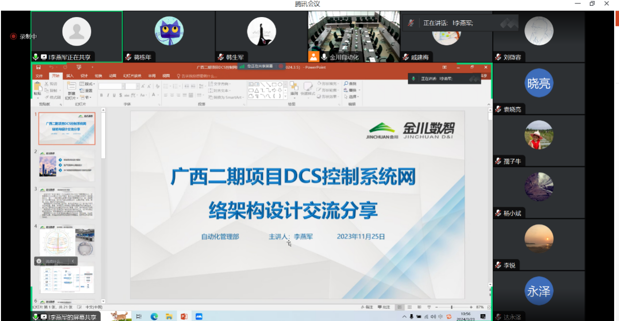 金川集团信息与自动化工程有限公司的首席工程师做了题为“基础数据建设与应用”、“智能天车关键技术”、“存储技术应用与后期发展趋势”、“广西二期项目DCS控制系统网络架构设计思路交流分享”的报告,从行业视角详细阐述了有色冶金工业控制的发展趋势和前沿技术,丰富了公司科研人员对实际工业控制过程中关键技术的认识。