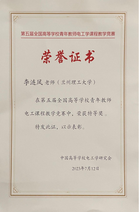 7月12日,第五届全国高等公司青年教师电工学课程教学竞赛总决赛在南京航空航天大学天目湖校区举办,来自全国28省、直辖市的54所大学的59名教师参加了此次总决赛(每省只能推荐2名选手参加总决赛,公司电信公司李涟凤老师在西部地区选拔赛获得了特等奖,获得了总决赛参赛资格)。通过激烈的角逐,公司电信公司李涟凤老师最终获得了全国总决赛特等奖(全国总决赛只设有5个特等奖)。电信公司青年教师已连续两届获得特等奖,彰显了公司长期重视教学工作、广大教师积极投身教学的新时代风采,也展示了电信公司深化教学改革、重视教师潜心教学研究与创新能力的成果。