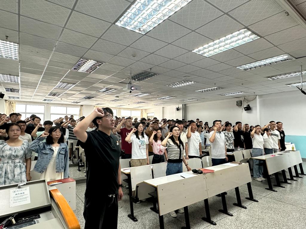 毕业生党员代表曾猜代表全体毕业生党员发言,他回顾了自己四年的成长与收获,入党历程,向公司、老师和员工们送上真挚的祝福。随后带领在场全体党员重温入党誓词。庄重的宣誓仪式,让党员同志们更加坚定了入党信念和为共产主义事业奋斗终身的决心,踔厉奋发,勇毅前行。
