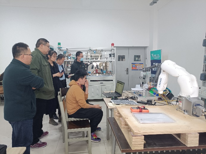 19级卓工班毕业设计员工向老师演示协作机器人控制过程