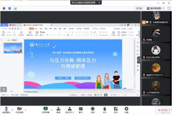 为做好疫情防控期间员工线上学习的心理健康工作。12月6日至7日公司陆续开展了关于情绪管理和时间管理方面的线上心理讲座。本次讲座旨在缓解同学们疫情期间的负面情绪,调整好学习状态与心理状态、做好时间规划与管理引导员工正视压力与情绪。本次讲座主要围绕以下两个方面: