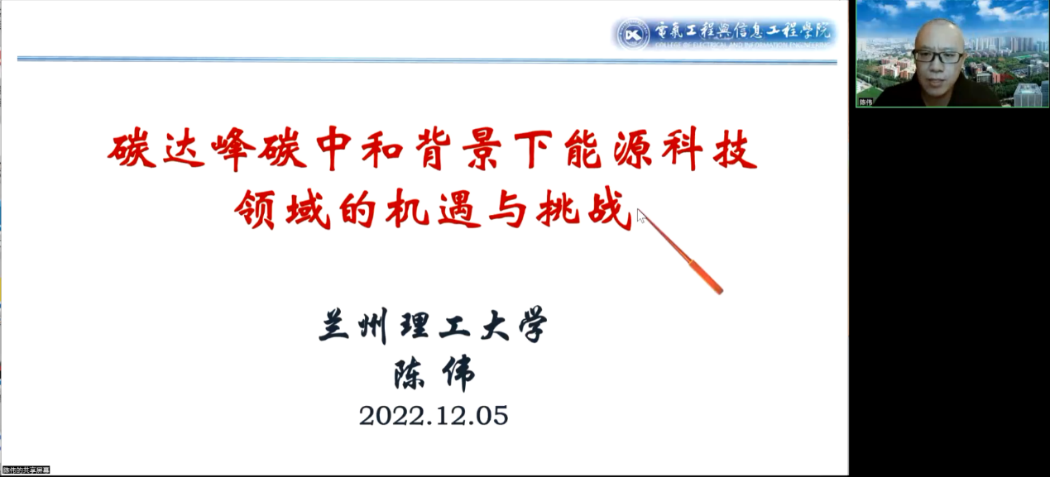 会议期间,陈伟教授和参会师生在线上进行了充分地交流和互动,报告内容丰富、信息量大、图文并茂、详实有据,深受参会师生们的欢迎。陈伟经理希望在“双碳”背景下青年教师和研究生应该有自己的使命任务和责任担当。报告引导参会师生思考公司不同专业围绕“双碳”战略目标能做哪些具体工作,以便抓住机遇;对青年教师的科研方向规划、研究生选题起到了积极的启示作用,对能源电力行业实现“双碳”目标起到一定的推动作用。(撰稿:魏占宏;终审:王玲)