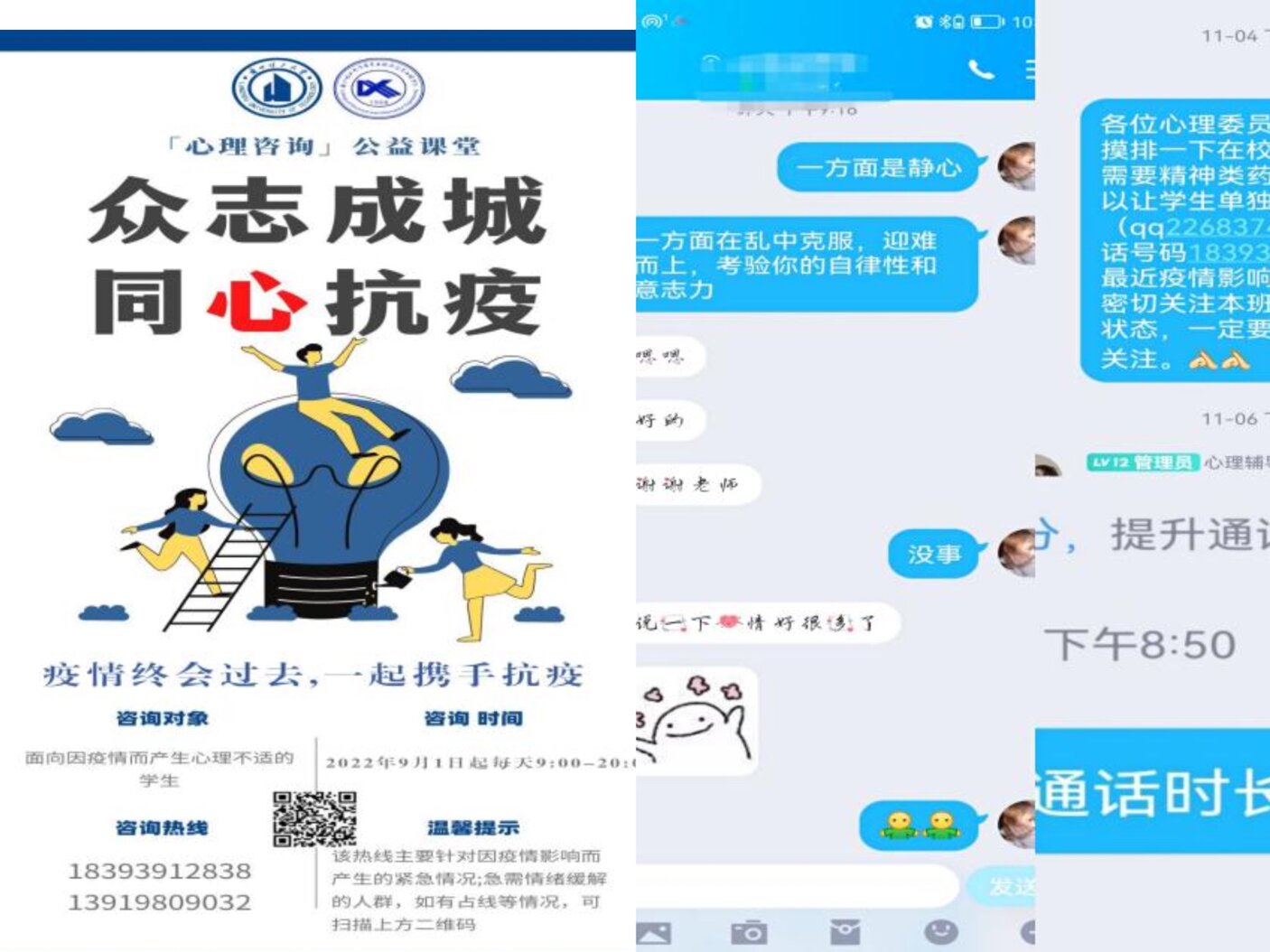 疫情以来,公司严格按照公司疫情防控政策实行管理,在长时间的封校环境下,员工也只能在宿舍活动,难免出现了焦虑、急躁的情绪。公司心理辅导站老师在疫情初始就开通线上心理咨询热线服务,以电话、qq等形式为有需要的员工提供帮助。