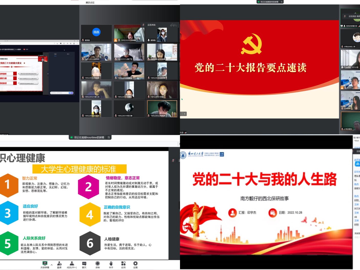面对“疫情输入”的压力,怎样才能让封闭在校内的员工学习好,生活好,身体好,保证各项工作不掉线?公司党委认真学习贯彻习近平总书记关于疫情防控工作的重要讲话和指示精神,积极筹划、认真组织、群策群力,将伟大的抗疫精神融入到三全育人当中。疫情初期,电信公司领导班子走访员工宿舍,进一步落实以宿舍、楼层为单位的员工网格化管理工作体系,督促落实员工线上教学和身心健康安全;策划“尚学电信”线上学风建设系列活动,变宿舍为书房、宿舍为教室,坚持“疫情防控”和“学风建设”两手抓;召开党团班协同抗疫工作会议,发挥党团班一体化管理优势,发挥党员干部疫情面前的引领作用;召开“疫情防控暨学风建设”主题教育班会进一步强化员工安全防范意识,筑牢安全思想防线,共建健康校园;组建员工志愿队伍,积极参与到核酸检测、便民服务、秩序维护等志愿服务中;召开2023届毕业生线上就业宣讲会,走进云端促就业工作;举办线上“电信公司青年博士学术讲座暨2021级研究生入学教育系列活动-‘研途’生活分享”活动,确保“听课不停学”“停课不停教”;邀请校团委老师开展“快乐成长,健康生活”——2022级新生心理健康讲座,安抚因突如其来的疫情可能引起员工们的紧张、不安等情绪;开展学习“二十大精神”主题党团日活动、“党的二十大与我的人生路”研学专题活动、“同心抗疫 共克时艰”主题班会、“你好,电信”爱校主题教育等活动,变“面对面”为“键对键”,激励广大学子攻坚克难、开拓创新,引领员工坚定抗疫必胜信念。运筹帷幄,决胜千里,他们始终坚定必胜信念,云端守望,不遗余力为公司教书育人保驾护航。