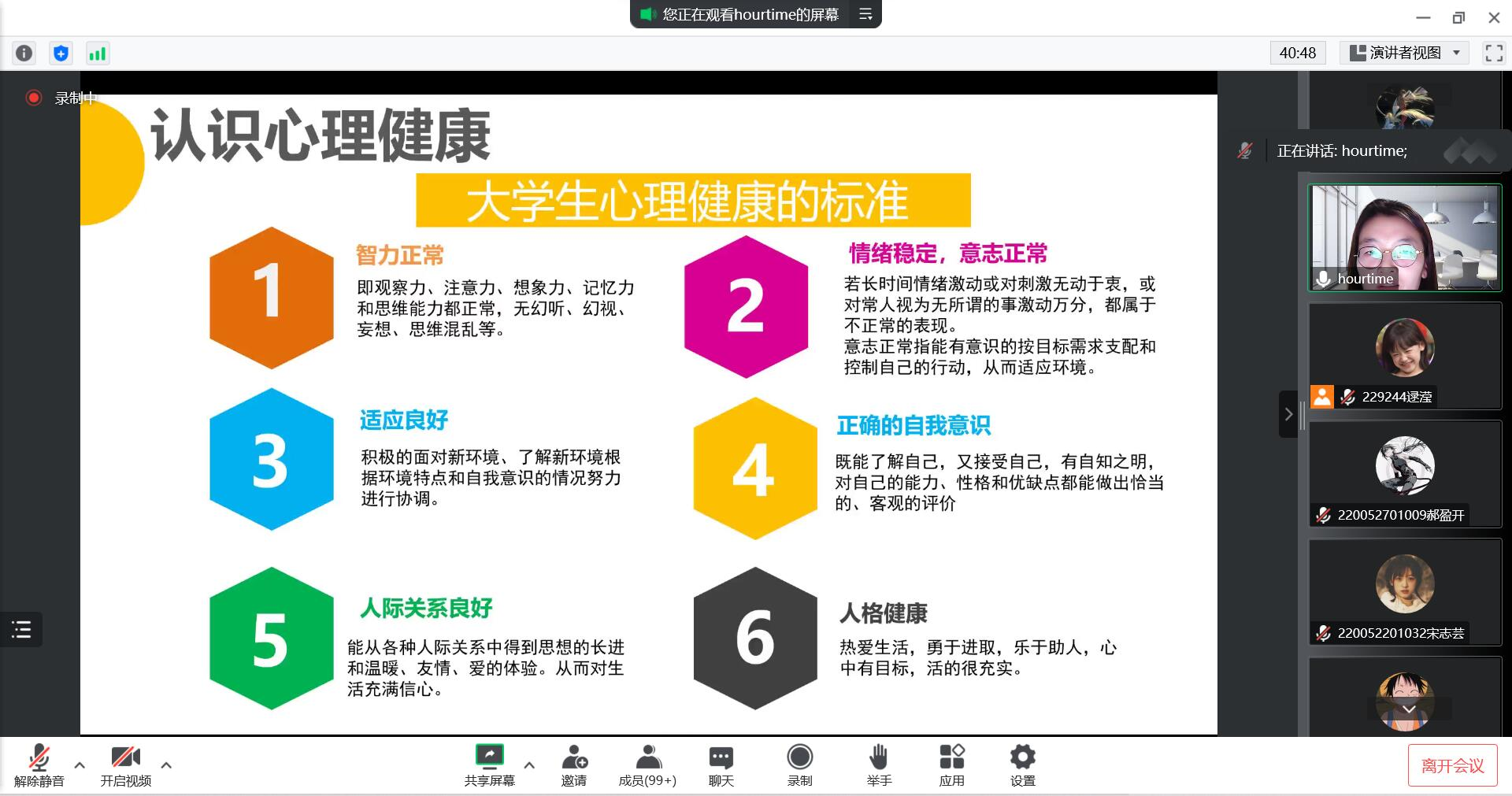 通过这次讲座,同学们大受启发,受益良多。公司在疫情当下积极开展心理健康讲座,为公司老员工带来一次心理的洗礼。后将继续组织相关讲座,做好员工的心理健康工作,促进员工健康心理和健全人格的发展。(撰稿:逯滢;终审:王玲)
