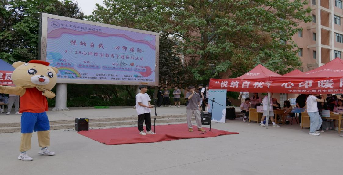 5月22日下午,金沙城js93线路检测中心电信公司心理辅导站主办的心理健康主题系列外场活动——“悦纳自我, 心印暖阳”在红柳广场顺利举办。
