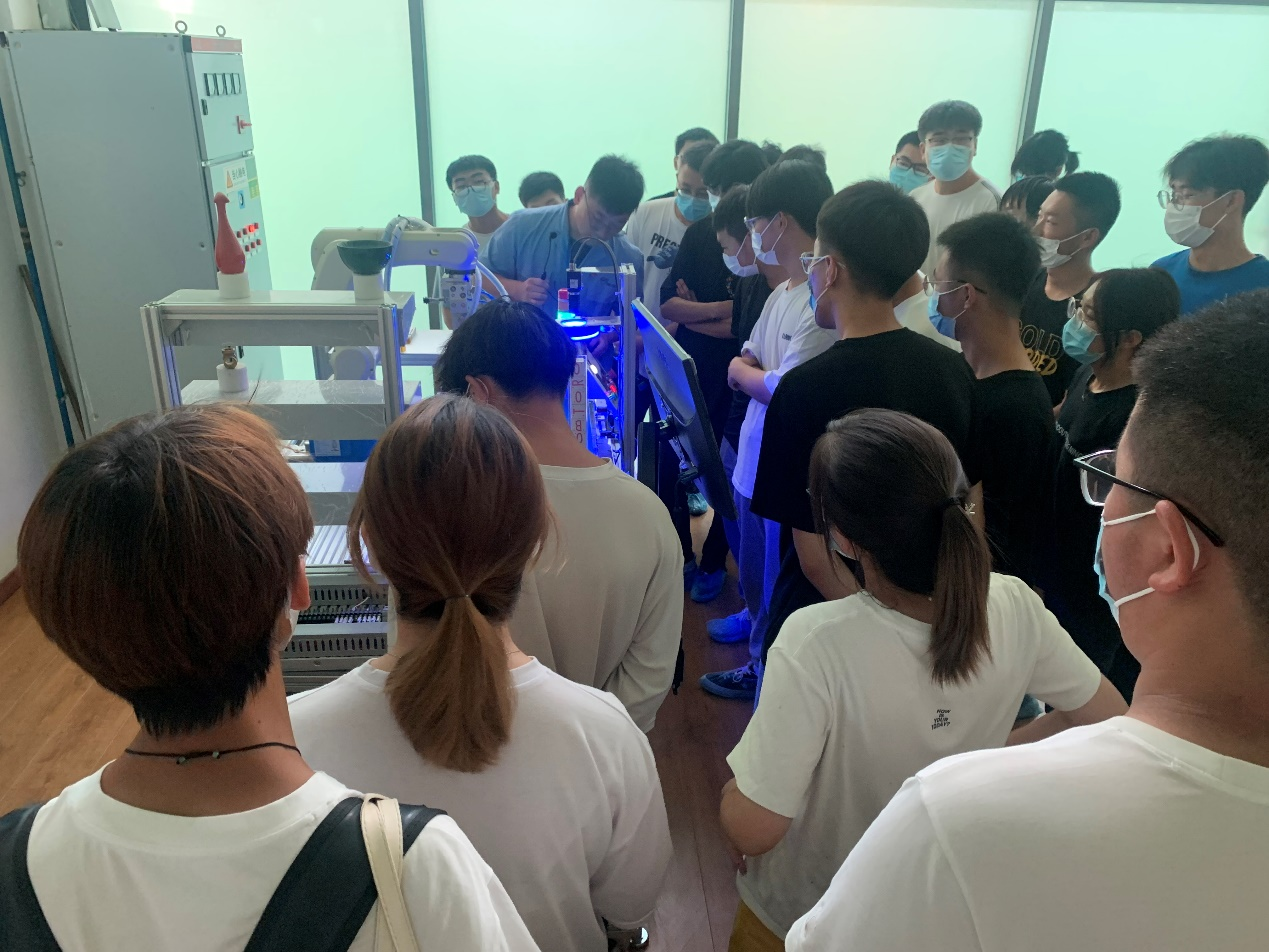 在兰州万里航空机电有限责任公司公司实习过程中,同学们了解企业立足甘肃的发展历程、企业文化及其在技术创新过程中的勇于担当奉献精神。在甘肃长风电子科技有限责任公司实习过程中,重点参观了长风机器人智能制造中心,了解企业“以工业机器人制造为牵引,智能制造服务为核心,工业云平台为体系”的发展思路,并感受5G技术、物联网技术、人工智能技术、信息技术等知识体系在生产过程及信息化管理方面的应用。通过天水华天科技有限公司提供的视频学习,了解芯片封测行业的划片、上芯、压焊、压塑、锡化、切筋测试和编带装管等生产环节,真切感受集成电路生产过程,增强专业知识深层次理解。
