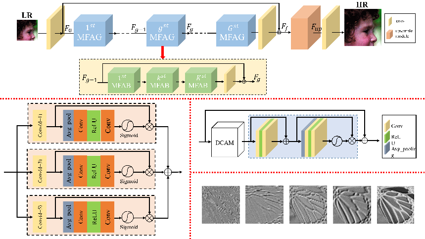 该论文提出了一种基于空洞卷积的融合注意力网络图像超分辨率重建算法来解决多分支的深度神经网络图像超分辨率重建算法难以获取图像多尺度上下文信息的高频分量问题。该算法构建空洞卷积注意力模型来替代多个网络分支捕获图像的多尺度上下文信息。同时,该算法构建多级特征注意力模型聚焦在多尺度上下文信息的高频成分来获取更多的高频特征。与一些最新的算法相比,该算法不仅在定量评价指标而且在视觉效果上都获得了较好的效果。