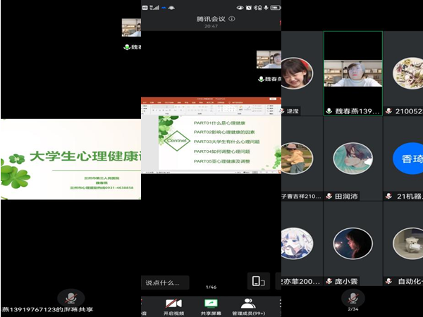 疫情封校期间,员工可能会产生焦虑、烦闷等情绪,公司密切关注员工的情绪变化。3月27日,电信公司邀请兰州市第三人民医院魏春燕主任为同学们开展了主题为“老员工心理健康”的线上讲座。