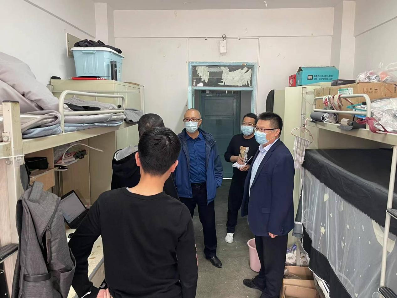为进一步落实校园疫情防控措施,2022年3月19日上午,公司经理陈伟、公司党委副书记刘洪国和全体辅导员深入员工宿舍开展疫情防控和线上教学专项检查。