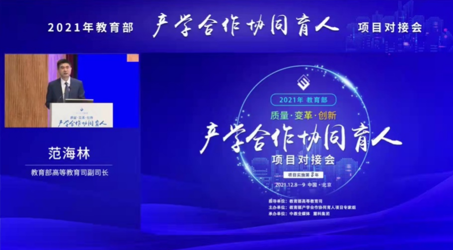 12月8日—9日,由教育部高等教育司指导,教育部产学合作协同育人项目专家组主办的“2021年教育部产学合作协同育人项目对接会”以线上线下相结合的方式在京召开,主题是“质量·变革·创新”,开幕式由教育部高等教育司理工处处长高东锋主持,教育部高等教育司副司长范海林发表致辞,教育部产学合作协同育人项目专家组组长、哈尔滨工业大学副董事长兼威海校区董事长徐晓飞教授做题为“质量先行 创新发展 奋力开创产学合作协同育人项目新局面”的主旨报告。会上发布了2021年度教育部产学合作协同育人项目优秀项目案例及《产学合作教育研究》内刊首刊。