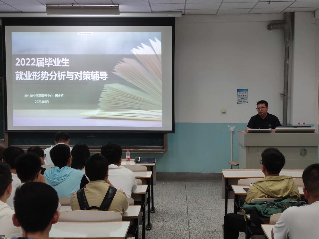 动员会上,杨金明主任从总体就业形式、疫情防控、就业政策和用人单位角度展开说明,使毕业生清晰地认识了当下的就业形势,引导同学们树立坚定信心和积极的就业心态。他希望同学们多关注就业政策、利用好各种新型就业平台,狠抓机遇,尽早就业、高参差就业。同时,杨金明从职业的变化来分析疫情常态化就业的难度,引导毕业生应结合新形势就业政策,客观、理性的评价自己,准确定位,选择适合自己的招聘单位。他强调同学们应准确掌握校招流程,不断提高求职面试各项技能,积极关注就业信息。最后,杨金明主任也不忘提醒毕业生求职过程中要有准确的职业定位,鼓励大家认真准备、放松心态、积极就业。