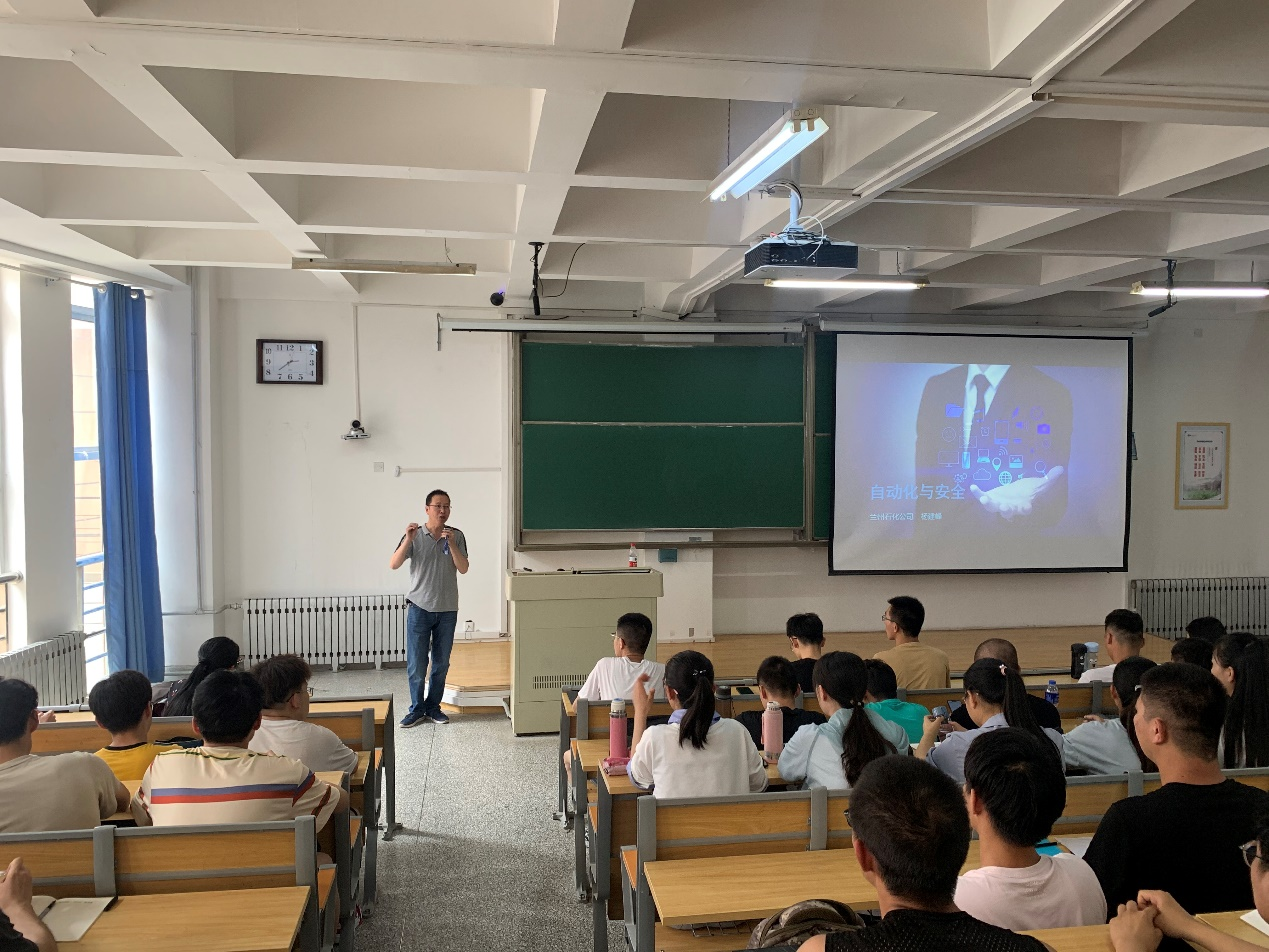 为确保19级自动化专业和机器人工程专业的“认识实习”教学效果,2021年6月28日,自动化系邀请中国石油天然气集团公司兰州石化分公司电仪事业部安全总监杨建峰副总工程师,在彭家坪校区1号教学楼208#阶梯教室开展了主题为《自动化与安全》的技术讲座,讲座由自动化系主任蒋栋年副教授主持,赵正天老师、李亚洁老师,19级自动化专业与机器人工程专业的全体员工参加了本次讲座的学习。