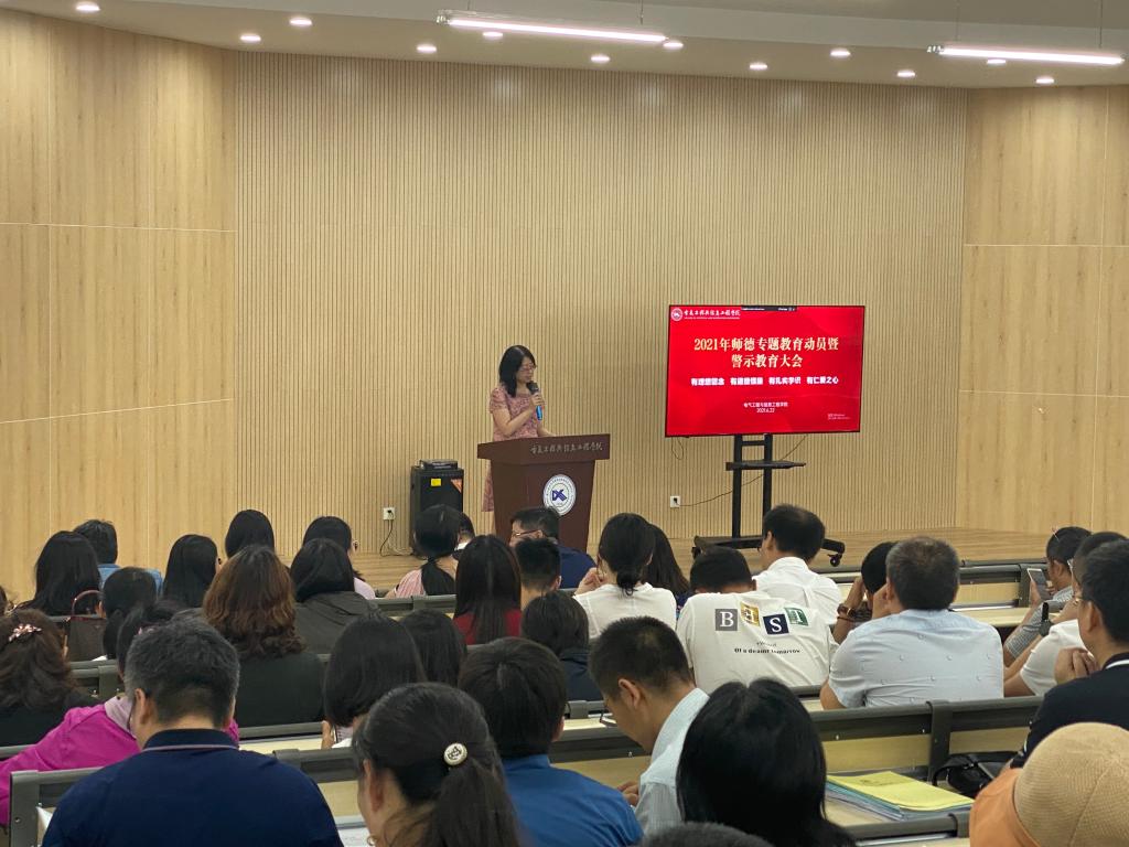 6月22日下午,电信公司在求是楼D401召开师德专题教育动员暨警示教育大会,公司全体教师一百三十余人参加了会议。会议由公司党委书记王玲主持。