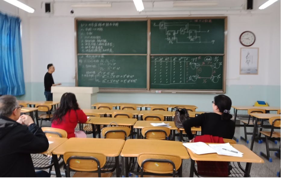 评审教师认真听取魏腾飞老师试讲