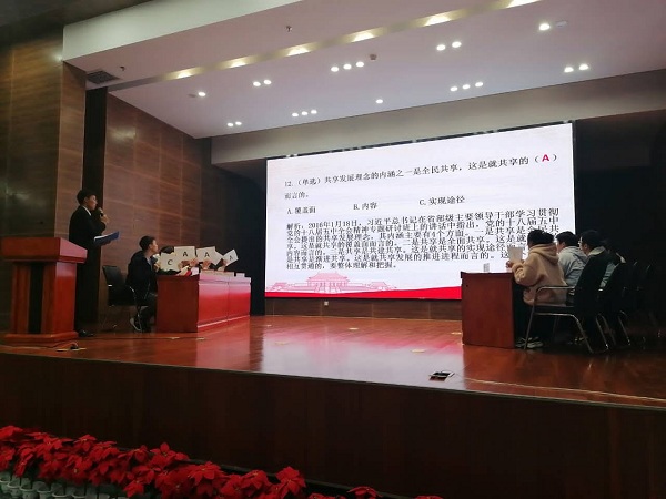 本次比赛分为两个知识竞赛和理论宣讲两个环节。各参赛队伍首先抽取了理论宣讲题目,进而指定一名选手参加党史国史主题知识竞赛环节活动。各位选手在台上通过题板当场展示出20道单选题和10道多选题的答案。