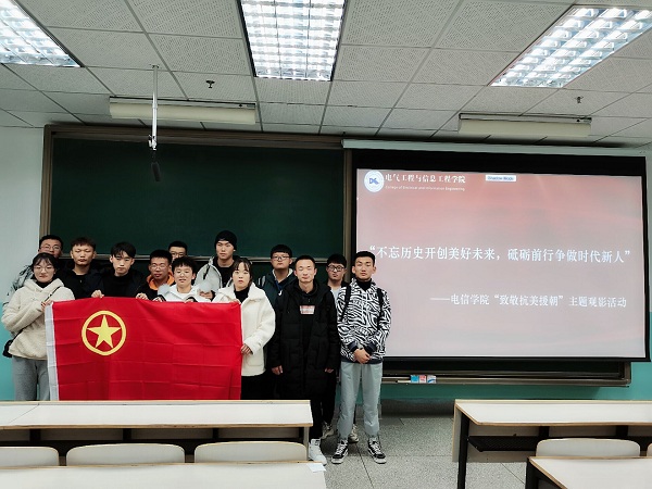 为纪念中国人民志愿军抗美援朝出国作战70周年,大力弘扬爱国主义精神。10月27日晚,电信公司于彭家坪校区东区励志楼1c203、1c301、1c302、1c402组织开展了“不忘历史开创美好未来,砥砺前行争做时代新人”主题观影活动,全体2020级新生参加活动。