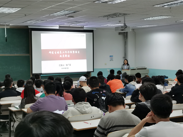 9月23日,在公司彭家坪校区励志楼,公司研究生主管经理包广清教授做《公司产品工作介绍及招生政策解读》招生宣传报告。包经理主要从公司学位点发展概况、培养目标与学位标准、学位点建设基本条件、学位点人才培养现状及招生政策解读等五个方面展开,就公司学科特色和优势、公司产品、国际化交流、奖助政策、历年考试录取规模与比例等进行了宣讲,帮助员工了解公司、了解研究生招录政策。
