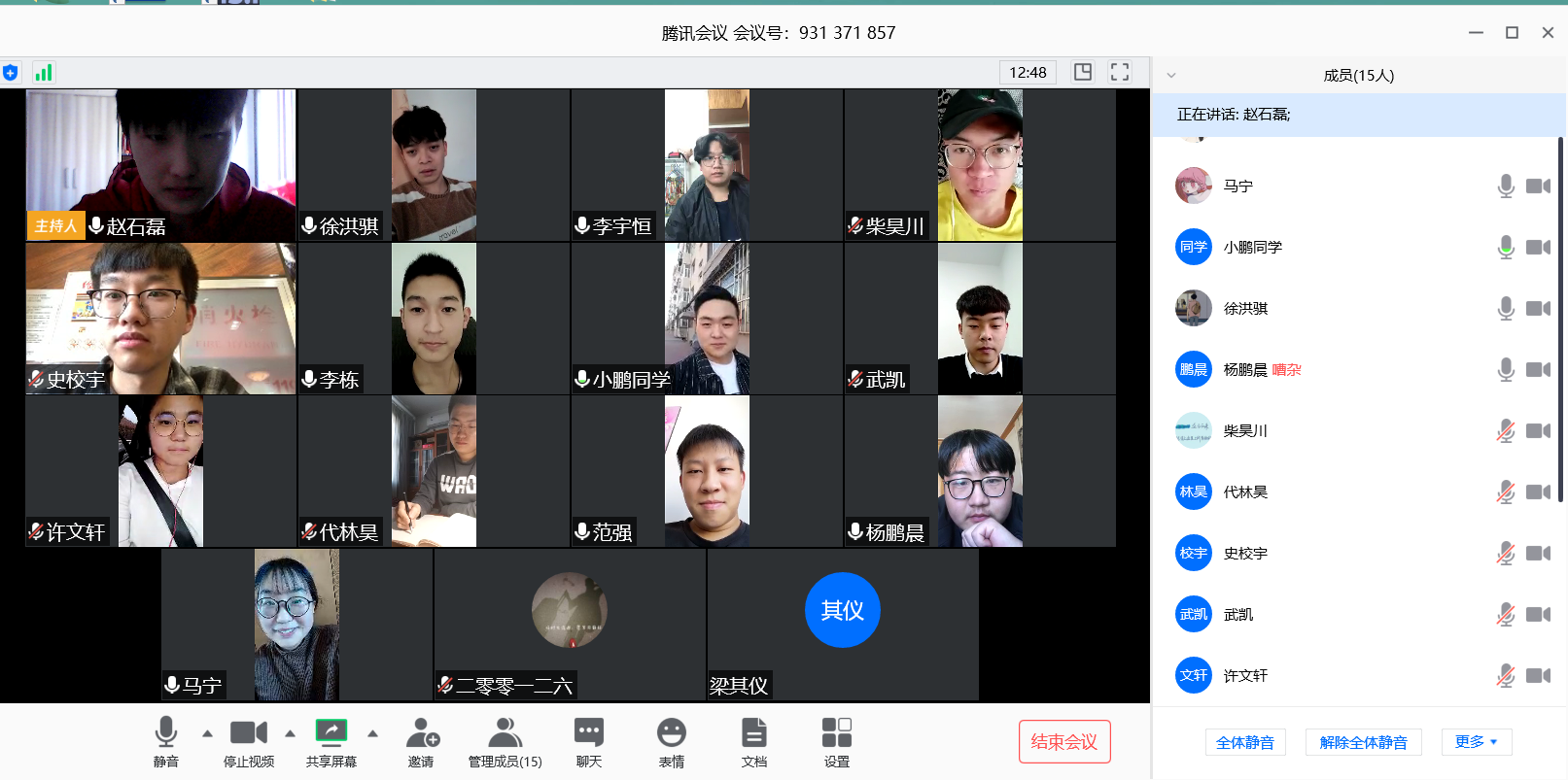 2020年4月12日下午,电信公司团委团委组织公司团学干部在线上共同学习《习近平总书记给北大援鄂医疗队全体“90”后党员回信》,习近平总书记的回信精神让参与学习的广大团学干部们倍感振奋、备受鼓舞,是对广大青年奋力夺取疫情防控和实现中华民族伟大复兴的极大鼓舞,也是对新时代青年树立远大理想、热爱伟大祖国、担当时代责任、砥砺奋斗、炼就过硬本领、锤炼品德修为的谆谆教诲。鼓舞大家以实际行动,为祖国的发展和公司的团学工作贡献青春活力。学习结束后,参会人员就本次学习内容及防疫阻击战展开交流,分享学习心得。
