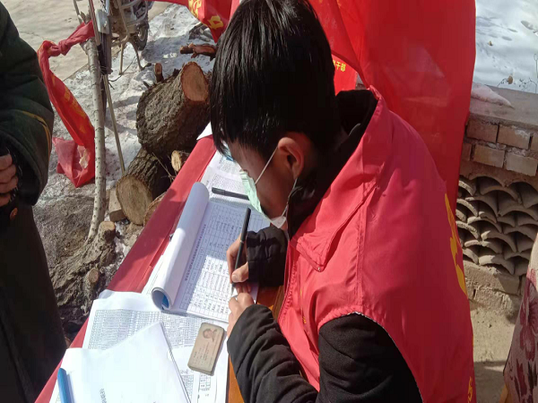 燕洋妞,电信公司2016级电子信息科学与技术专业大四毕业生。在这场没有硝烟的战争中,燕洋妞所在的陇南市礼县出现了4例肺炎确诊患者,村口的防疫工作日益严峻。作为一名中共预备党员,她第一时间联系村支书申请志愿服务并开始在村口防控监测点执勤,为了严格控制外来人员和车辆,她主要负责过往人员的登记工作、政策解释说明工作和群众的思想工作。她说,“在祖国危难之时,作为一名老员工党员,我想尽自己最大的能力守护好村口,守护好我的家乡,为国家尽一份力。一方有难,八方支援,我相信这场抗击肺炎的人民战争我们一定会胜利!”