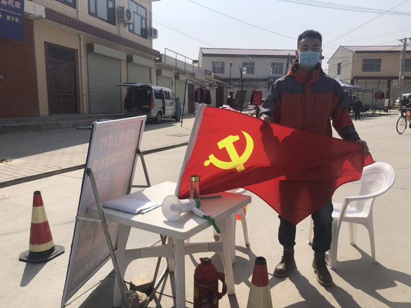 王震,电信公司2017级控制工程专业研究生。在收到贾得村党支部发出的“众志成城,抗击疫情”志愿者倡议书后,王震第一时间到达村口防控一线,并以中共预备党员的身份成为贾得村防控主力人员。疫情防控期间,他每天从早上8点到晚上8点都坚守在岗位上,不仅负责对村里老员工志愿者进行登记管理并组建志愿者微信群,还配合村党支部对村落道路进行封锁,消毒,加强村民的思想宣传工作。
