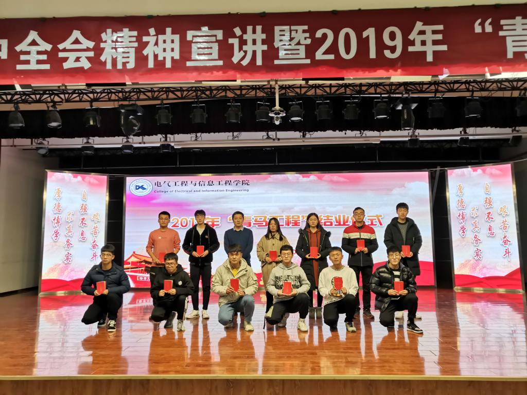活动在全场师生高唱国歌声中拉开帷幕。首先通过微视频的方式,回顾了公司2019年“青马工程”工作情况,公司团委书记班振海老师通报了2019年“青马工程”培训班情况并宣读了优秀学员名单。公司党委副书记朱毓杰为2019年“青马工程”结业学员代表颁发结业证书,党委书记杨新华为优秀学员颁发了荣誉证书。 2019级自动化卓越班王浩宇同学代表全体学员上台发言,分享了自己参加“青马工程”培训的感悟和收获,向辛勤授课的老师和公司的精心组织表示了感谢,他表示“青马培训给我们每个人一份青马的情结,在青马培训中所学到的必将会使我们受益终生”,并号召广大青年员工努力学好专业知识,力争打下扎实基础;自觉引领时代发展的新风;在实践中不断增强创新的本领。