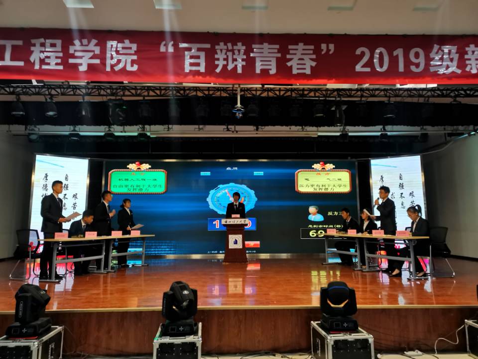 在主持人介绍了参赛的两支辩论队以及到场的嘉宾、评委之后。辩论赛正式拉开帷幕。为了让同学们了解辩论赛的过程和内容,首先由公司辩论队选手为大家奉献了一场题为“当代青年人的‘精致穷’错了吗?”精彩表演赛。2019级新生辩论赛决赛阶段,2019级电气2班和机器人工程1班代表队双方就“自由和压力谁更能促进老员工发挥潜力”展开辩论,展示自己的观点同时,辩驳对方观点。
