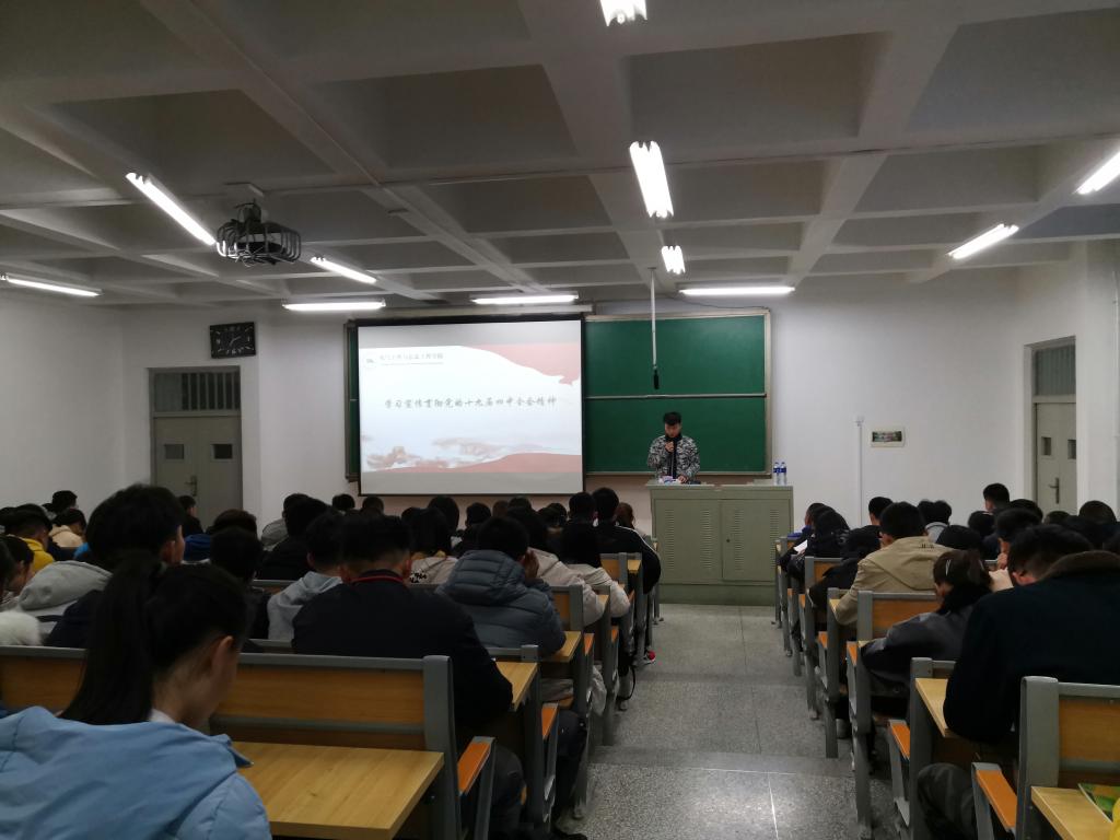 2019年11月22日,电气工程与信息工程公司在彭家坪校区集贤楼组织公司2019年秋季“青马工程”培训班全体学员学习十九届四中全会精神。公司“青马工程”培训班全体学员及团委、员工会全体干部参加了本次学习,会议由公司团委组织部负责人主持。