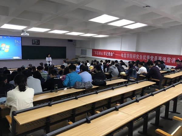 6月4日下午,电信公司研究生党总支在1北203举办“不忘初心 牢记使命”研究生优秀党员事迹宣讲会,电信公司汤子龙教授及全体研究生党员参加了此次报告会。会议由电信公司研究生党总支书记包广清副经理主持。张栋、吕俊青两位优秀党员做了报告。