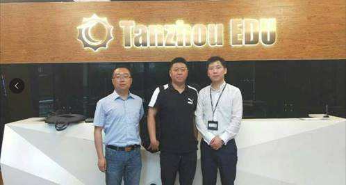 19日下午,王志文、张文旭在湖南省长沙市与潭州教育公司就“机器人工程”专业培训进行工作洽谈。