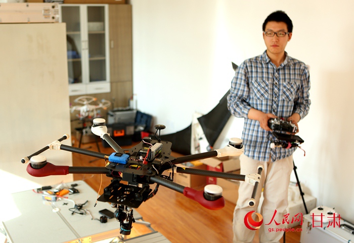 “这架无人机现在是我们的主力机型,它是八旋翼无人机,这两天出了点问题,我正在维修。”正在捣鼓着无人机的杨启帆说。生于1990年的杨启帆是金沙城js93线路检测中心电信公司电气工程专业研二员工。在校期间,从小爱钻研电气设备的他长期到公司实验室搞研究创造,在不断的努力和积累下,2011年作为发明人的杨启帆和他的团队成功研制了“可变速飞行工程作业无人机系统”,并成功申请国家专利。 如今,25岁的他与两位朋友在兰州高新技术产业区老员工创业苗圃注册了一家航空工程科技公司,通过自己的专利技术,以及零件组装、购买等形式,先后成功试飞固定翼、多旋翼、直升机、飞艇等4类共12架无人机。公司运营半年多来,已为当地国土、地震、农业、体育等部门提供了特种拍摄、土地测绘、植保作业、影视航拍、无人机维修等服务,成功放飞了“创业梦”。 目前,杨启帆和他的团队正在致力于研究无人机根据飞行高度、空中风速、农作物种植密度等因素,自动调节农药喷洒量的“无人机喷溉系统”。他希望这项新技术可以填补国内无人机精确喷洒农药的技术空白,为大面积农业种植提供更高效且低成本的喷溉技术服务。