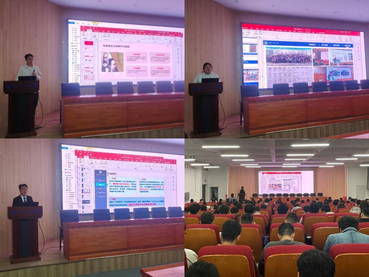 马克思主义公司硕士生李阳以“奋进求是,学以成人”为题,讲述了自己的科研经历、科研成果以及充实丰富的研究生生活,激励大家要脚踏实地,在实践中锻炼综合能力。随后,计算机与通信公司硕士生周巍从思想建设、学业精进、科研创新、实践拓展四个维度,生动诠释了科研成果转化的现实价值。同时,鼓励同学们要发挥自身的主观能动性,善于团结身边同学,培养团队协作的能力。最后,电气工程与信息工程公司硕士生李森以“稳固根基开新路,承接传统谋革新”为主题,分享了自己在科研项目中的心路历程。通过不懈努力,攻克了许多难关,在学术期刊上发表了多篇论文,为所在学科领域的科学研究贡献了自己的一份力量。