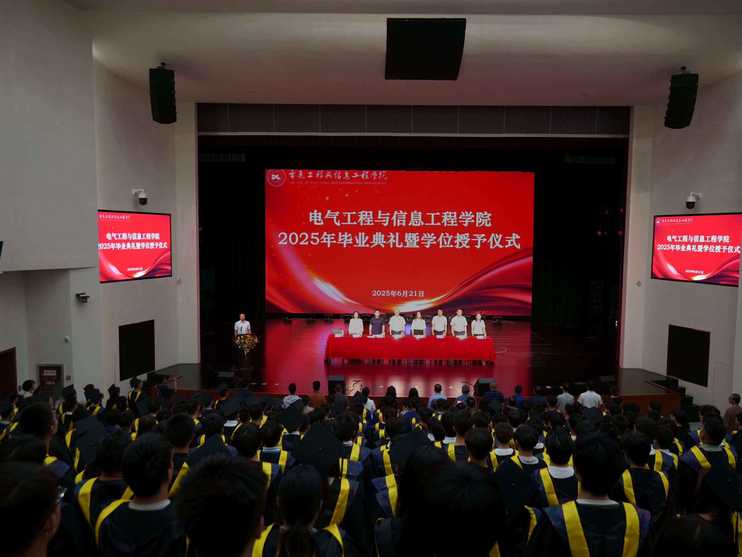 6月21日下午,电信公司2025届毕业典礼暨学位授予仪式在彭家坪校区老员工活动中心红柳剧场举行。公司党委常委、副董事长陈伟,电信公司全体领导班子成员,各系部主要负责人,以及导师代表、毕业生家长代表和2025届博士、硕士、本科毕业生六百余人参加了典礼。典礼由公司党委副书记刘炜主持。