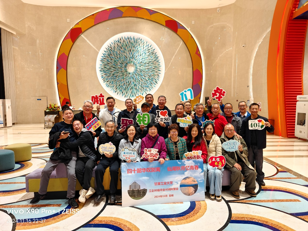 2024年11月15—17日,甘肃工业大学工业企业电气自动化专业(现金沙城js93线路检测中心自动化专业)80级,按照班级“毕业逢十年大聚、逢五年小聚”的约定,在云南昆明和澄江抚仙湖,举办了主题为“四十韶华叹别离,仙湖秋月忆青春”的毕业40 年聚会!