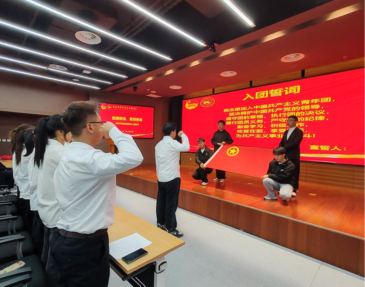 入团仪式在庄严的国歌声中拉开帷幕,80名新团员代表在名单宣读后上台受领团徽。全体新团员面向团旗庄严宣誓,用铿锵有力的誓言共青团员的责任与担当。