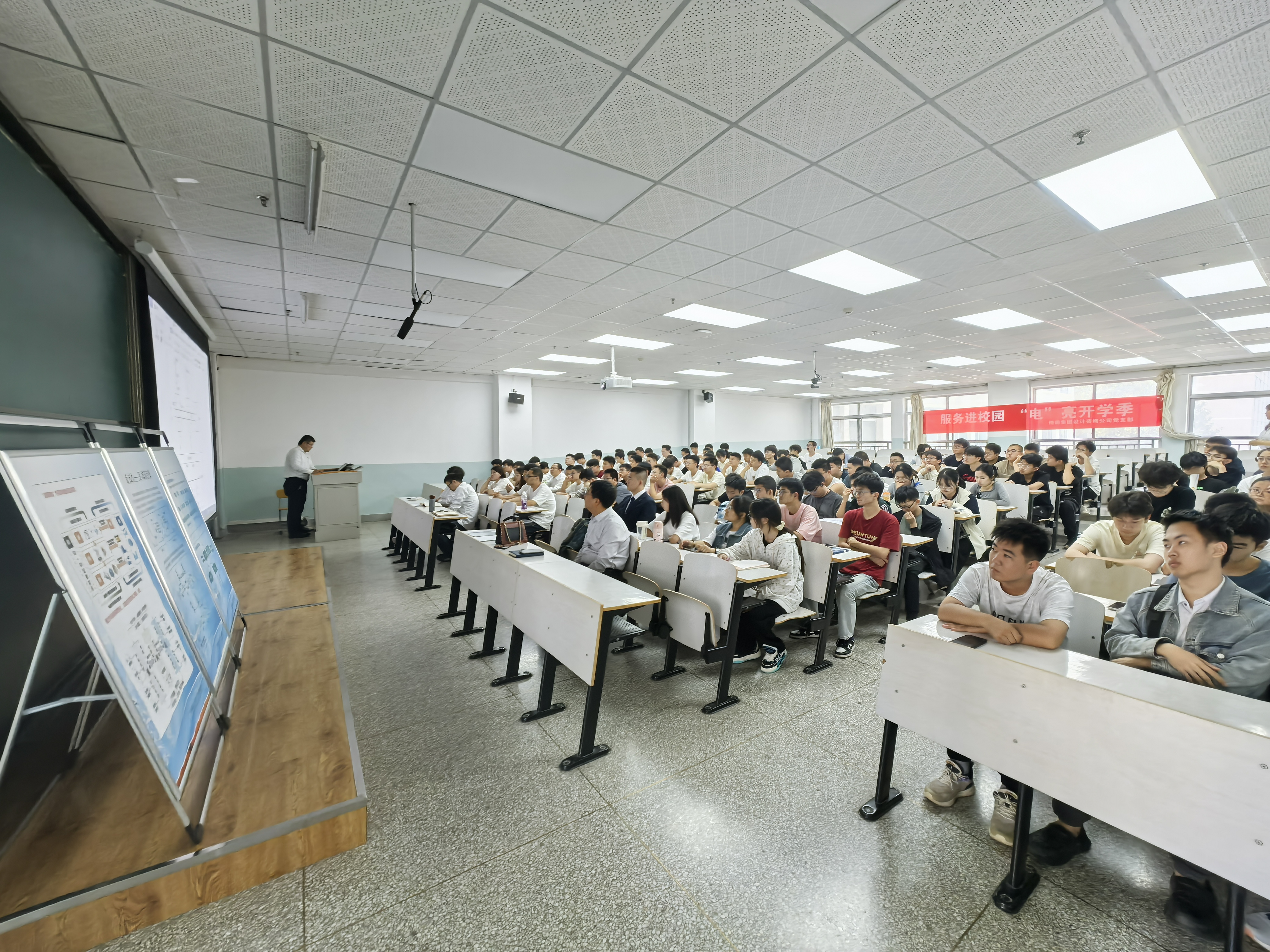 本次“党建联建”活动分为两个阶段。第一阶段,由倚能设计咨询公司党支部书记彭焕昕高工作了题为《新型电力系统电气基础知识》与《新型电力系统“源网荷储”协同发展》的报告,接着系统新能源室副主任高级工程师薛莲和配网电气主设高级工程师火熠分别作了题为《数智化设备在电网中应用》、《电动汽车充电站相关知识》的专题讲座,张宏亮副经理最后进行了总结发言。电气工程及其自动化专业2021级、2024级全体同学现场聆听了系列报告,第一阶段活动由电气工程系副主任裴婷婷主持。