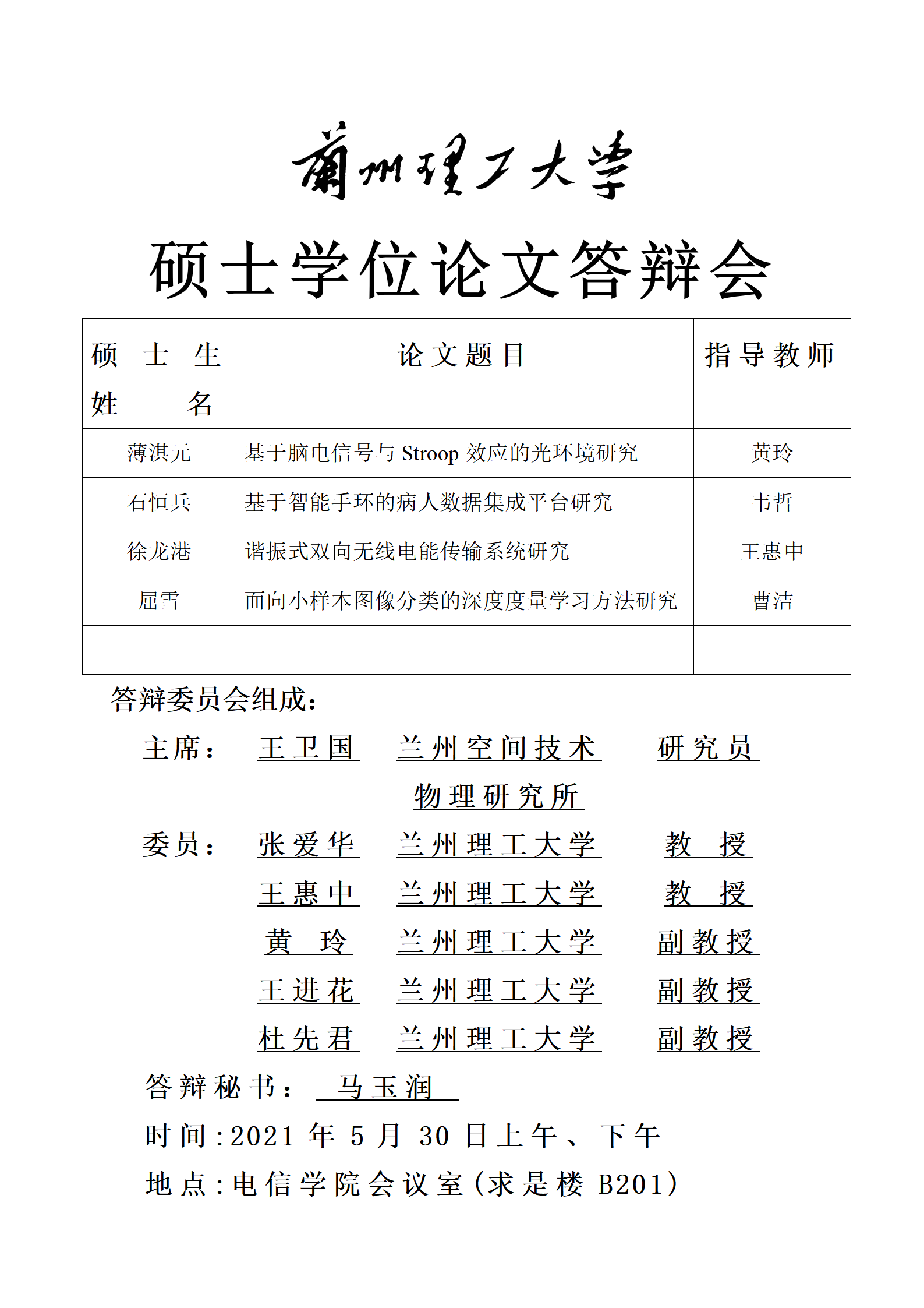 电信公司电子科学与技术学科专业学位硕士研究生毕业答辩公示(电子专硕5月30日上午、下午)