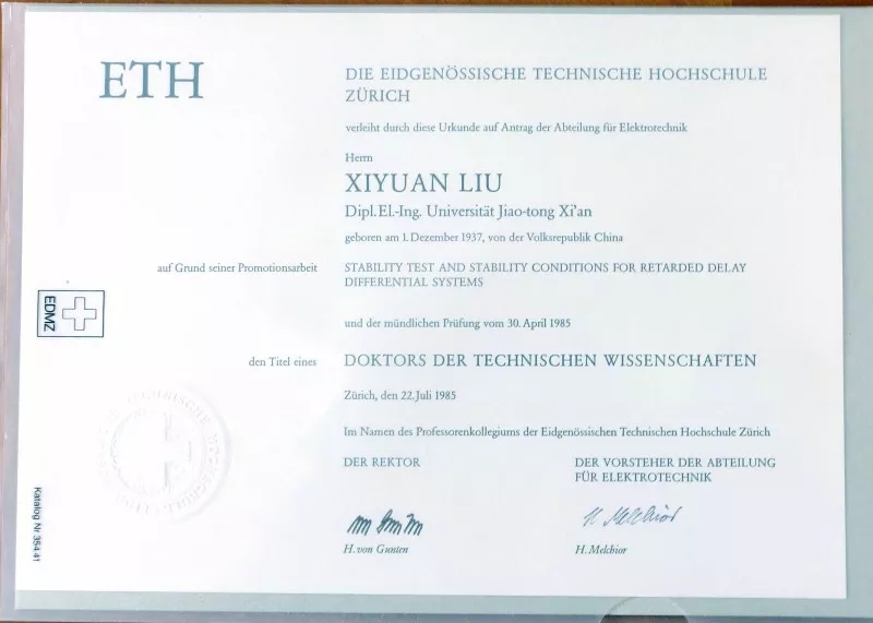 1985年4月,鉴于刘希远取得的这一重大成果,苏黎世高等理工公司破例同意他考取博士学位。在该校,一般攻读博士学位需要六年甚至更多的时间,要通过许多相应课程的严格考试,而刘希远以全优成绩通过了博士论文答辩。这是该校首次将博士学位授予一名中国员工。