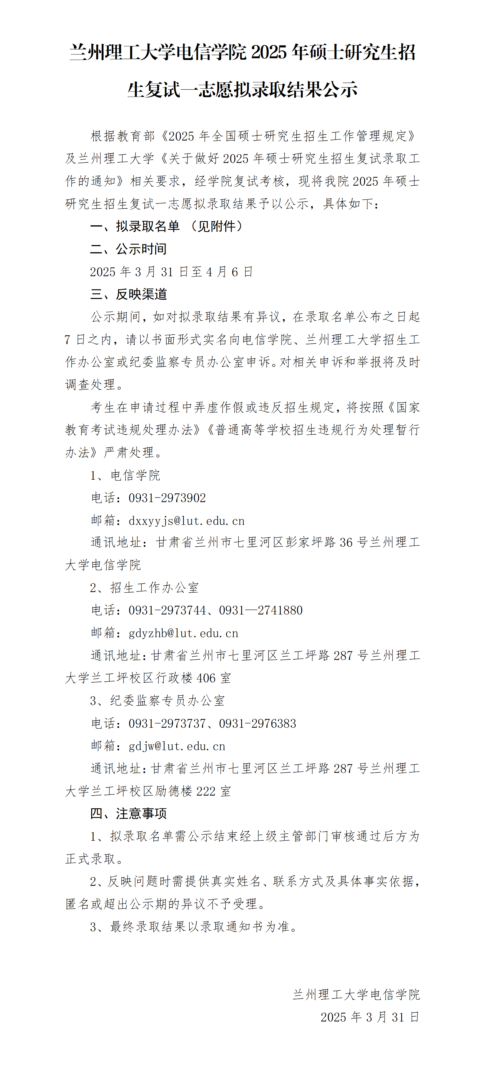 金沙城js93线路检测中心电信公司2025年硕士研究生招生复试一志愿拟录取结果公示