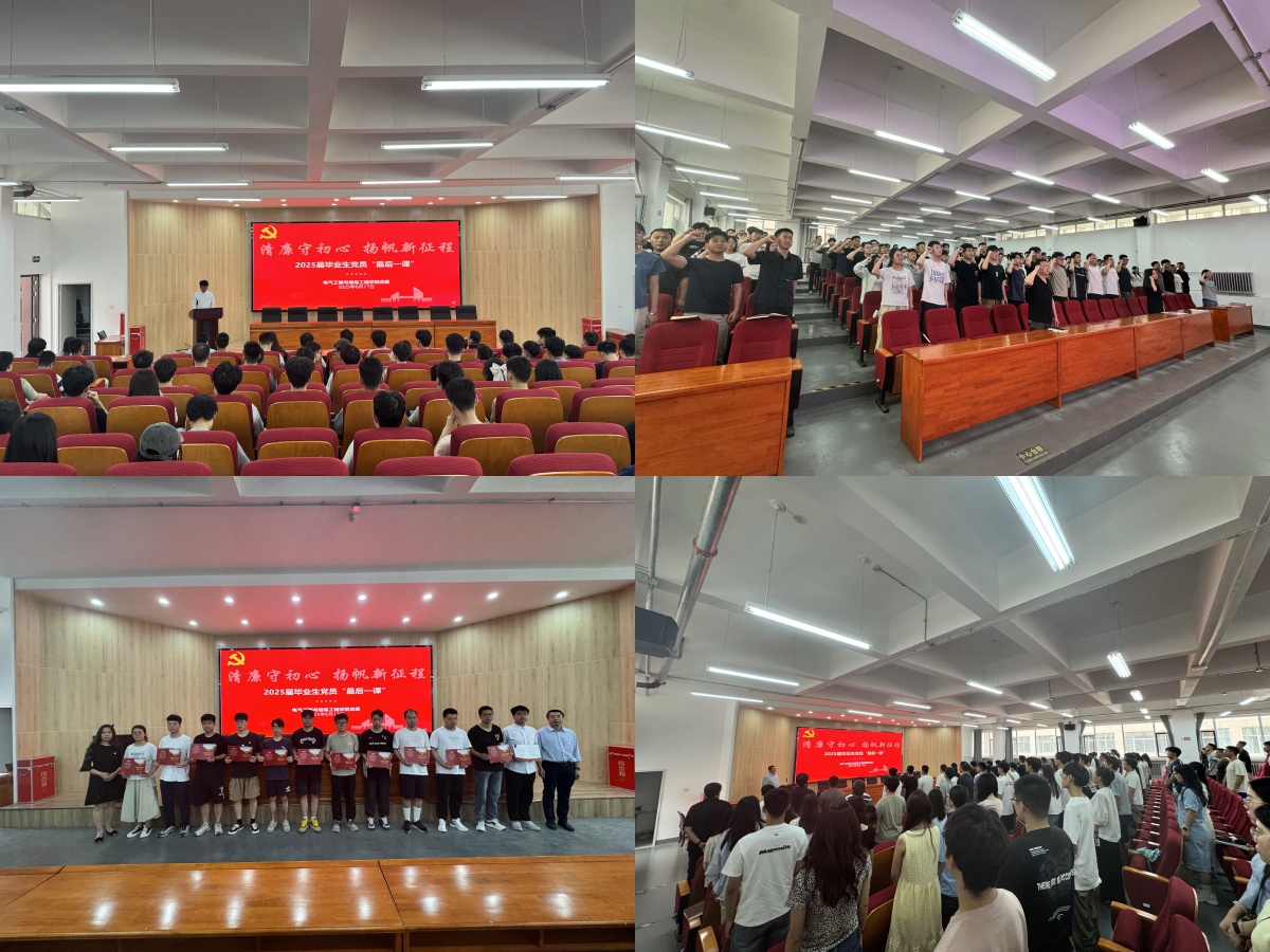 本次活动聚焦“清廉”与“初心”,旨在为即将离开校园、奔赴祖国各地建功立业的毕业生党员们送上公司党组织的殷切嘱托和深情祝福,为他们扣好走向社会的“第一粒扣子”。活动伊始,2021级电气本科生第2党支部姬文涛同学作为毕业生党员代表上台发言,他回顾了在公司党组织的培养下,从青涩学子成长为合格党员的历程,分享了参与理论学习、社会实践和志愿服务的感悟,号召全体毕业生始终铭记入党初心,坚守廉洁底线,锤炼过硬本领,以实干担当展现公司党员的良好形象。发言结束后, 全体毕业生党员面向鲜红的党旗,高举右拳,重温入党誓词,再次深刻铭记入党时的庄严承诺。
