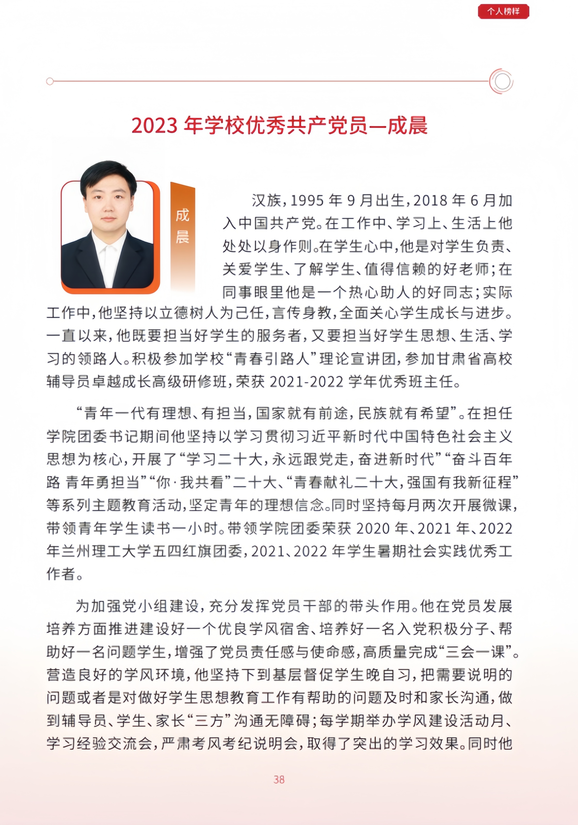 2023年公司优秀共产党员--成晨