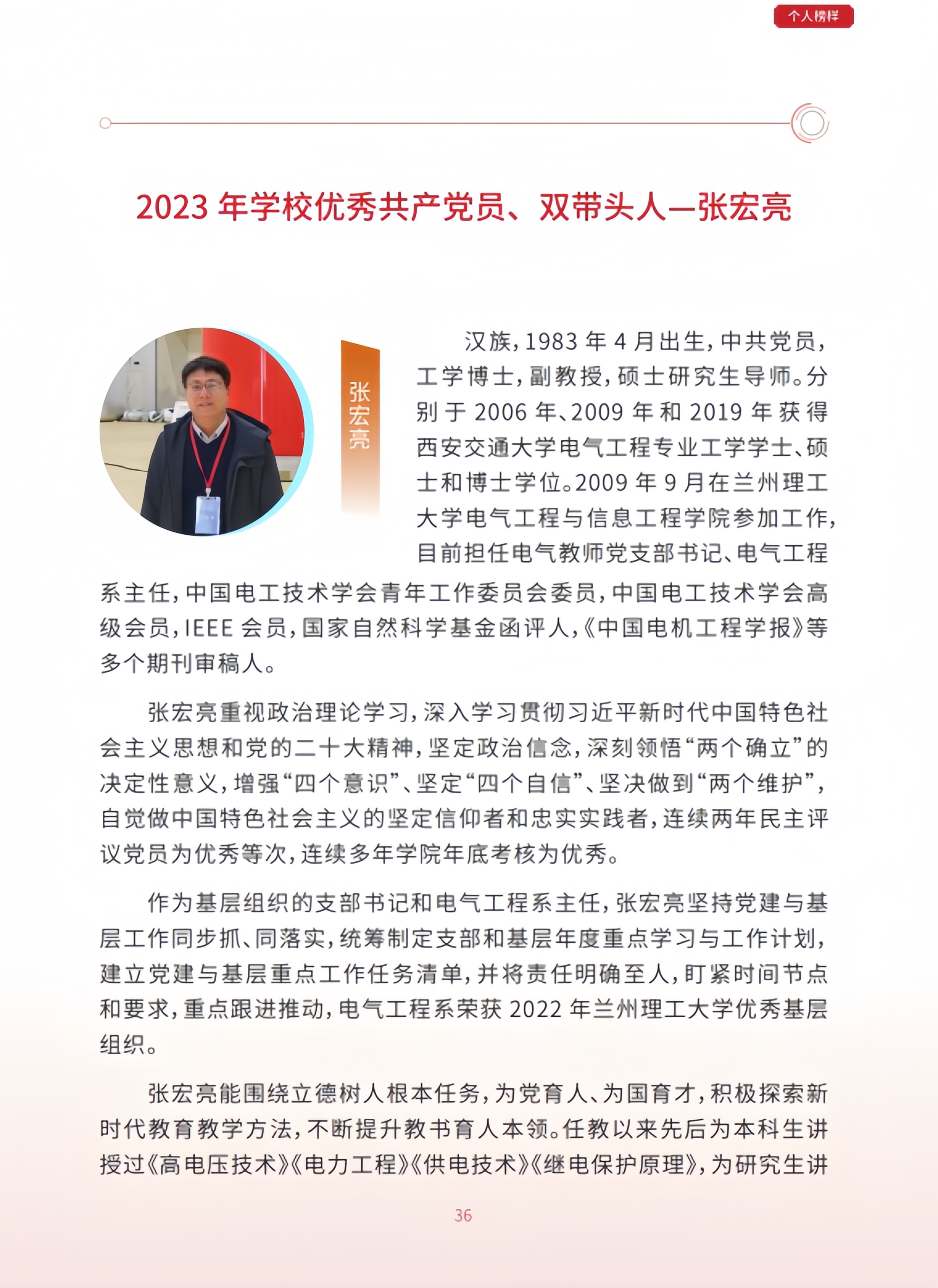 2023年公司优秀共产党员、双带头人--张宏亮
