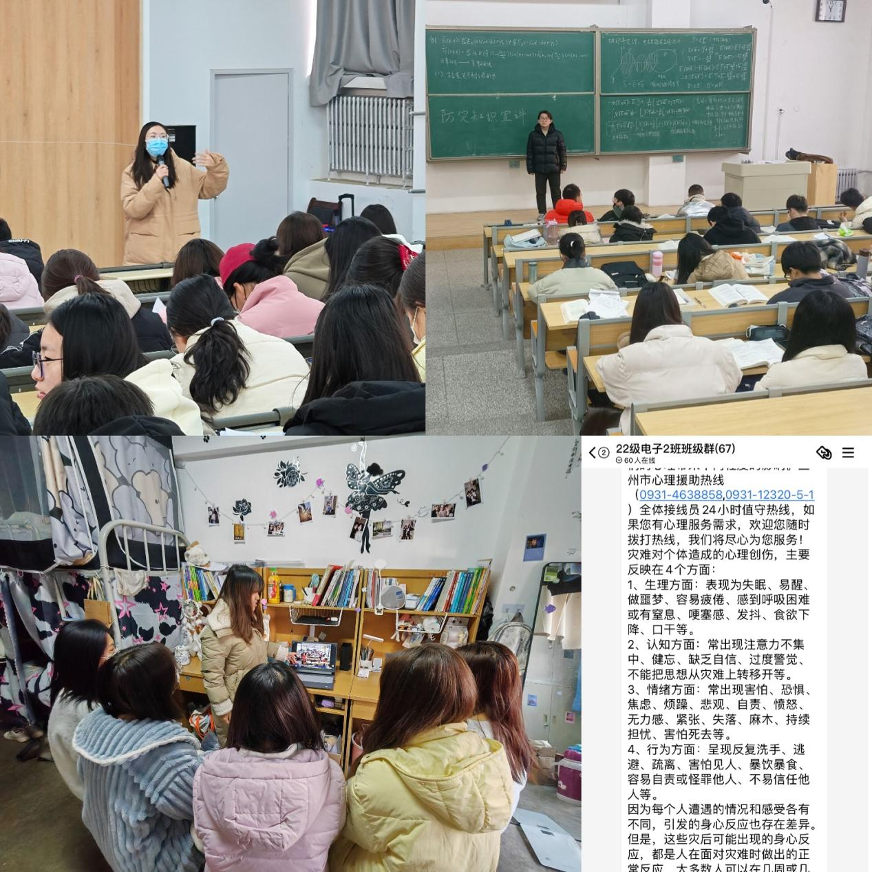 2023年12月18日晚,甘肃省临夏州积石山县发生6.2级地震。为增强同学们对地震知识的了解,提升应急避险能力,缓解员工震后焦虑情绪,电信公司团委、员工会积极响应,组织开展防震减灾知识宣传、心理健康教育等活动。