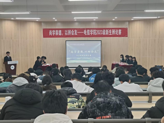 11月30日,电信公司在舒卷楼D401举办“尚学崇德,以辩会友”2023级新生辩论赛。公司团学负责老师、校辩论协会成员、文公司和电信公司辩论队员工骨干及2023级新生同学共150余人参加本次活动。