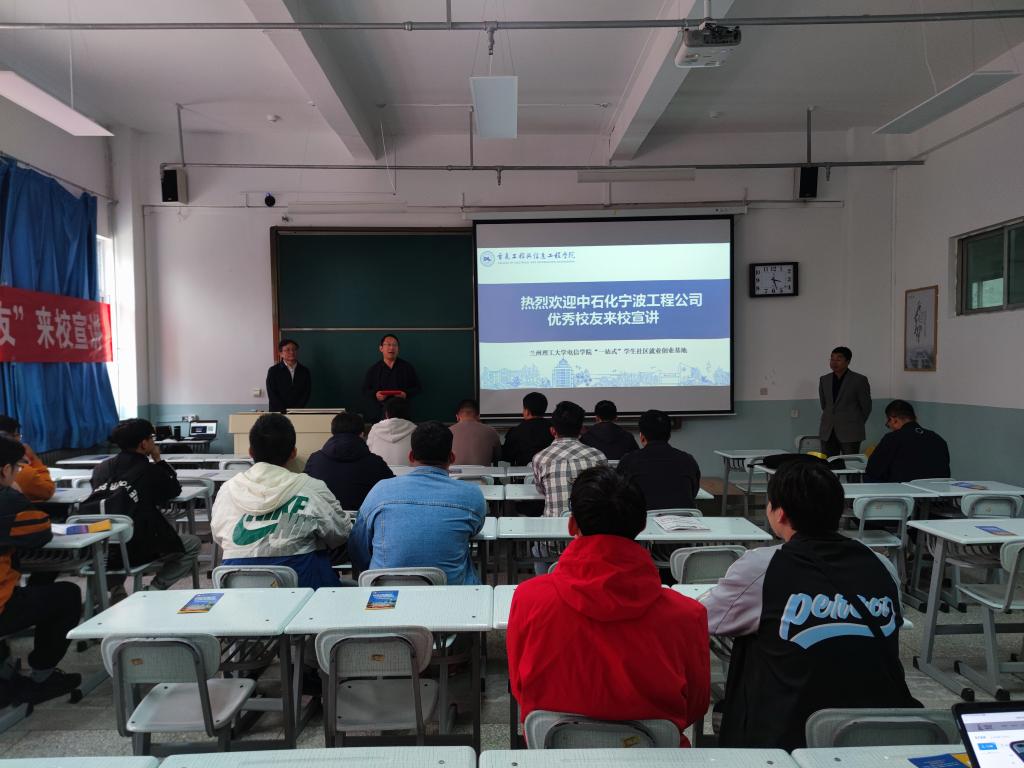 他还详细介绍了中石化宁波工程公司的基本情况、企业文化、员工发展及待遇福利等方面,使同学们对该企业有了更加深入的了解。他表示公司高度重视员工的职业发展,为员工提供了广阔的职业发展空间和良好的职业发展平台,并欢迎学弟学妹能入职公司。
