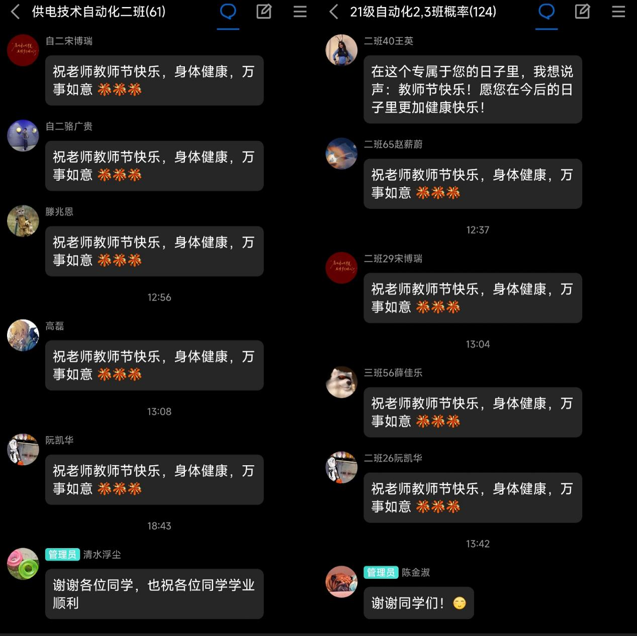 桃李芬芳,教泽绵长,教师以三尺讲台,揽星辰大海,赋予美好,授之希望。教师节来临之际,同学们纷纷在贺卡上写下了对老师的祝福。公司团委员工会志愿者还在综合服务楼、各上课教室、舒卷楼等地为教师送去了鲜花和祝福,同时,同学们还通过微信或QQ等社交软件发送信息,表达对老师的祝福与感恩。