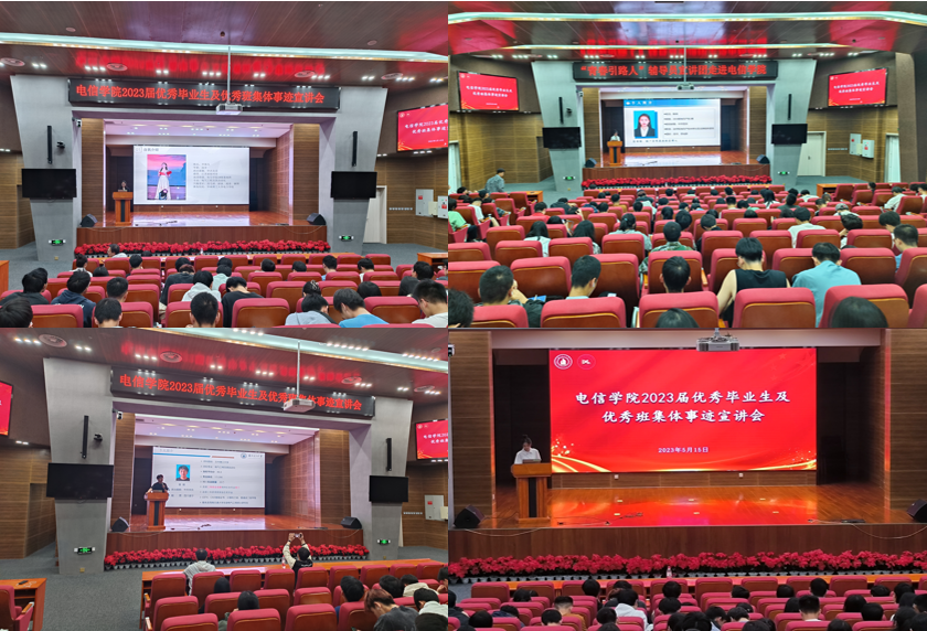 5月15日晚,电信公司在图书馆106报告厅举行“尚学好青年”2023届优秀毕业生及班集体先进事迹分享会。会议邀请电信公司曾猜、申敖凡,法公司优秀代表陈琦同学为电信公司全院员工分享学习经验。