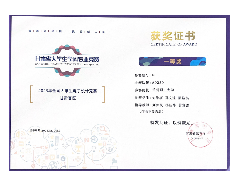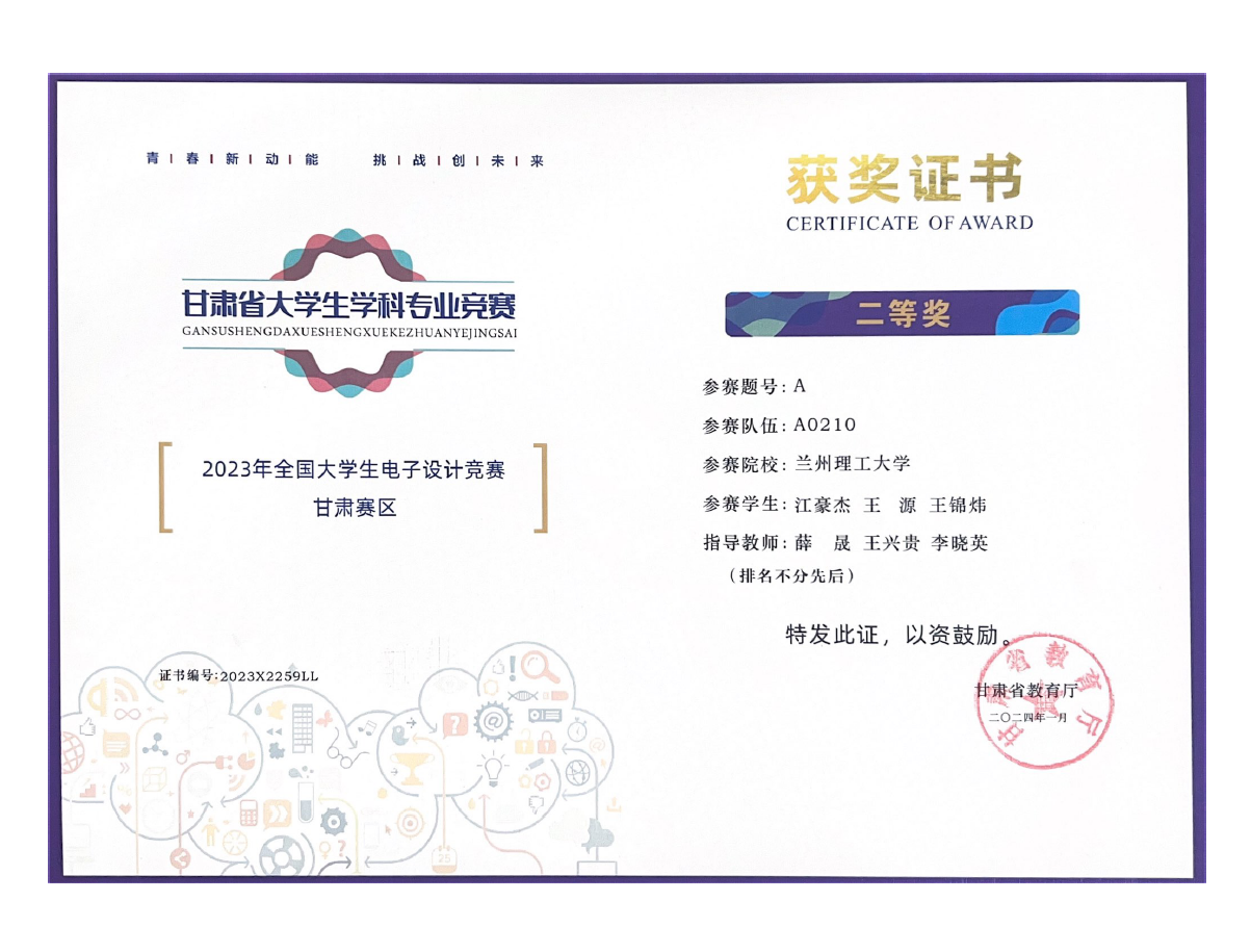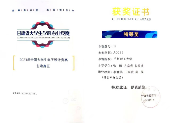 2023年全国老员工电子设计竞赛甘肃赛区由甘肃省教育厅主办,金沙城js93线路检测中心承办,竞赛分为初赛、测评和综合测评三个阶段。最终,金沙城js93线路检测中心获奖情况:全国二等奖1项,省级特等奖6项,省级一等奖3项,省级二等奖5项。